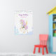 Birthday Poster with an adorable unicorn with wings, which is surrounded by cute pictures of a magical castle, clouds and festive bunting.