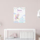 Birthday Poster with an adorable unicorn with wings, which is surrounded by cute pictures of a magical castle, clouds and festive bunting.