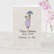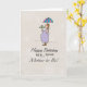 Happy Birthday to the Mum to Be on her pregnancy. This cute card shows a Mum caring for her baby bump with a mini umbrella. Perfect for a baby shower!