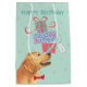 Happy birthday greetings with this cute design featuring a smiling Golden Retriever balancing a stack of birthday presents on its nose. Text can be easily changed; just click on customise button.