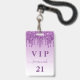 Birthday purple glitter drips monogram luxury vip ID badge