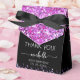 Elegant Modern Girly Pink Purple Glitter Monogram Name Signature Script Custom Personalised 30th (or any age) birthday Thank You Favour Box. This design featuring your first name in a pretty hand lettered style swash tail font signature typography (or calligraphy) above faux pink purple glitter on black background. These stylish girly feminine gift boxes great for handing out, gifts, guest gifts and treats during an upcoming birthday party, baby shower, sweet 16 birthday, BBQ, bridal shower, wedding reception, bachelorette party, anniversary and more.