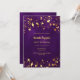 A modern, stylish and glamourous invitation for a 40th (or any age) birthday party. A deep purple coloured background with faux gold stars. The purple colour is uneven. The name is written with a modern hand lettered style script. Personalise and add your party details.