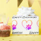 Neon rainbow pet paw print with heart and Happy Birthday text on white background.