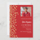 A modern, elegant and invitation. A red background decorated with faux gold confetti. Personalise and add photo, a name and party details. White text.