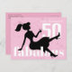 This design features a fifty and fabulous birthday invitation retro postcard, with a modern budget 50th birthday party cute, elegant chic glitter trendy stylish, 50 and fabulous fiftieth whimsical, elegant simple minimal minimalist, trendy cocktails drinks typography, cheers to 50 years, great for adult girly feminine women, milestone bash party celebration, making 50 look good with and pink background