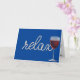 red wine in stemware glass with word RELAX in rope design on blue for birthday.