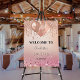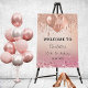 A stylish rose gold and blush pink background with drips and balloons. Personalise and add a name and age.