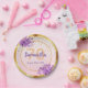 Birthday rose gold floral elegant name paper plate
