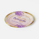 A feminine, girly and chic paper plate for a 70th birthday party. Glamourous with elegant and modern with a soft rose gold, blush pink gradient backdrop. With faux gold frames, and ultra violet and purple coloured watercolored flowers and golden confetti rain. Templates for name, age and date. Purple and golden coloured letters.