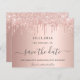 A girly and trendy Save the Date card for a 40th (or any age) birthday party. A feminine pink, rose gold background decorated with drips. Personalise and add a date and name/age 40. Dark rose gold coloured letters. The text: Save the Date is written with a large trendy hand lettered style script.