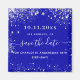 A trendy royal blue background. Decorated with faux silver glitter dust. Personalise and add a date and name/age 18 (or any age). The text: Save the Date is written with a large trendy hand lettered style script.