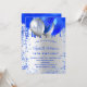 A faux silver looking background. Decorated with royal blue faux drips paint dripping look, sparkles and balloons. Personalize and add a name and party details. The name is written with a hand lettered style script.