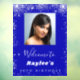 A welcome decal for a girly and glamourous 30th (or any age) birthday party. A royal blue background with elegant faux silver sparkles. Personalise and add a photo, name and age 30. White letters.