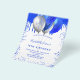 A white background. Decorated with royal blue faux glitter drips paint dripping look, sparkles. Royal blue and faux silver balloons. Personalise and add a name and party details. The name is written with a hand lettered style script.