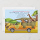 A safari-theme, drive by birthday invitation featuring a giraffe, elephant, zebra and lion in a land cruiser. (<a href='https://www.freepik.com/free-photos-vectors/flyer'>Flyer vector created by macrovector - www.freepik.com</a>). (<a href='https://www.freepik.com/free-photos-vectors/travel'>Travel vector created by macrovector - www.freepik.com</a>). (<a href='https://www.freepik.com/free-photos-vectors/tree'>Tree vector created by brgfx - www.freepik.com</a>). (<a href='https://www.freepik.com/free-photos-vectors/car'>Car vector created by gstudioimagen - www.freepik.com</a>). <br/><br/>The card is easy to customise with your wording, font, font colour, paper shape options and choice of six paper types.<br/><br/>Not exactly what you're looking for? All our products can be custom designed to meet your needs at no extra charge.<br/><br/>Simply contact us at askcottonlamb@gmail.com.<br/><br/>Coordinating products available: Just ask us!"
