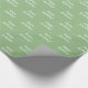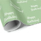 Elegant, classic party wrapping paper sheets. A sage green background, white text: Happy Birthday!