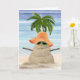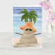 Tropical sand man with hat and sunglasses on ocean watercolor background.