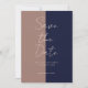 This design features classic blocks of colour - mocha and navy with blush pink spots on the reverse of the card. words "Save the Date" are typeset in blush pink. Use the template fields to add you custom details. Can be used for a sweet 16, 40th, 50th, 60th birthday...or any age