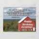 Personalised Birthday postcard depicts a big red barn and pond overlooking a beautiful scenic landscape. Make it special by personalising the card with the name of the birthday boy or girl on the side of the barn, or the name can be deleted. The card features bible verse, Jeremiah 29:11, and the greeting/prayer on the back can be modified.~