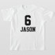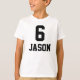 Shirt voor de leeftijd 6. Voor iemand die zes jaar is geworden. Daar onder kan je de naam van de birthday boy veranderen.