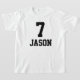 Shirt voor de leeftijd 7. Voor iemand die zeven jaar is geworden. Daar onder kan je de naam van de birthday boy veranderen.