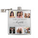 The flask itself is fine. It’s a cheap flask, obviously bought in bulk, however am prepared to overlook that. Given that it is a personalized item, I would have liked to have seen gift boxing instead of the generic packaging. Terrible printing, and/or quality. It’s a cheap, tacky vinyl. It is not cut straight and is also applied in a way that it is overhanging the bottom, causing the glue to catch on items and it will eventually roll and tear, damaging the wrap.