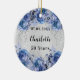 A faux silver looking background decorated with faux glitter, sparkles and blue flowers. Personalise and your name and a date.