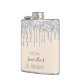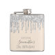 A gift for a girly and glamourous 21st (or any age) birthday party. A cream coloured background with elegant faux silver glitter drips, paint dripping look. The text: The name is written in grey with a modern hand lettered style script. Personalise and add a name, age 21 and a date. Add your own message and names on the back.
