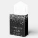 Elegant Modern Girly Silver Glitter Monogram Name Signature Script Custom Personalised 30th (or any age) birthday Thank You Favour Box. This design featuring your first name in a pretty hand lettered style swash tail font signature typography (or calligraphy) above faux silver grey glitter on black background. These stylish girly feminine gift boxes great for handing out, gifts, guest gifts and treats during an upcoming birthday party, sweet 16 birthday, baby shower, BBQ, bridal shower, wedding reception, bachelorette party, anniversary and more.
