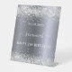 Birthday silver glitter name welcome pedestal sign
