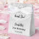An elegant and glamourous birthday, any age. Faux silver looking background with faux glitter, sparkles. With the text: Thank You! Personalise and add your name age and a date. Black letters. The name is written with a trendy hand lettered style script.