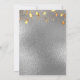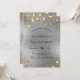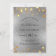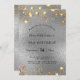 On front: An invitation for a 50 years old, 50th (or any age) birthday party. A faux silver looking background. Decorated with faux gold stars dripping. Personalise and add a name and party details. The name is written with a hand lettered style script, black coloured letters.