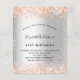 For an elegant 21th (or any age) birthday party. A faux silver looking background. Decorated with rose gold confetti. Personalise and add a name and party details. The name is written with a hand lettered style script