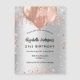 For an elegant 21st (or any age) birthday. A faux silver looking background. Decorated with rose gold and faux silver glitter drips, paint dripping look and balloons. Personalise and add a name, age 21 and party details. The name is written with a hand lettered style script