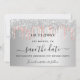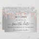 A girly and trendy Save the Date card for a 21st (or any age) birthday party. A faux silver looking background decorated with rose gold and faux silver glitter drips, paint dripping look. Personalise and add a date and name/age. The text: Save the Date is written with a large trendy hand lettered style script.
