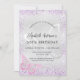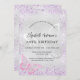 A modern, elegant birthday invitation. Faux silver looking background decorated with purple faux glitter sparkles, a pink butterly and a silver butterfly as watermark. Personalize and add your names and wedding details. Black colored letters.
