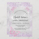 A modern, elegant birthday invitation. Faux silver looking background decorated with purple faux glitter sparkles, pink butterflies and a silver butterfly as watermark. Personalise and add your names and wedding details. Black coloured letters.
