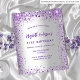 A girly and feminine 21st (or any age) birthday party invitation. On front: A trendy faux silver looking background. Decorated with dark purple and violet faux glitter, sparkles. Personalise and add a name, party details. The name is written with a hand lettered style script, purple coloured letters.