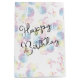 Abstract iridescent soap bubble pattern on a white background with Happy Birthday text.