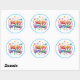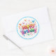 Round sticker is shown with a Happy Birthday confetti print.