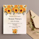 A rustic golden gradient background, decorated with yellow and orange sunflowers and roses. Personalise and add a name and party details.