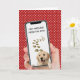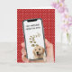 Golden retriever in cell phone frame with text message on white polka dots red for birthday from the dog