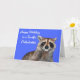 Wish a Happy Birthday to a terrific Orthodontist with a humourous card featuring an adorable racoon showing off his pearly whites (dentures) with a big beautiful smile. Background is a pretty light blue with white text.