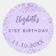 A trendy violet background. Decorated with confetti. Personalise and add a name, age and the date.
