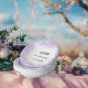 A white background. A white background decorated with violet, lavender confetti. Personalise and add a name and date.