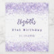 A white background. Decorated with violet, lavender coloured confetti. Personalise and add a name, age and the date.