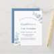 A white background, decorated with dusy blue eucalyptus stems, sprigs. Personalise and add a name and party details.
