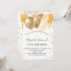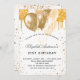 For an elegant 21st (or any age) birthday. A chic white background. Decorated with faux gold glitter drips, paint dripping look and balloons. Personalise and add a name, age 21 and party details. The name is written with a hand lettered style script