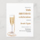A modern, stylish and glamourous invitation for a Pearls and Prosecco birthday party (any age) A white background with a glass, flute with golden bubbles and pearls. The name is written with a modern hand lettered style script. Personalise and add your party details.